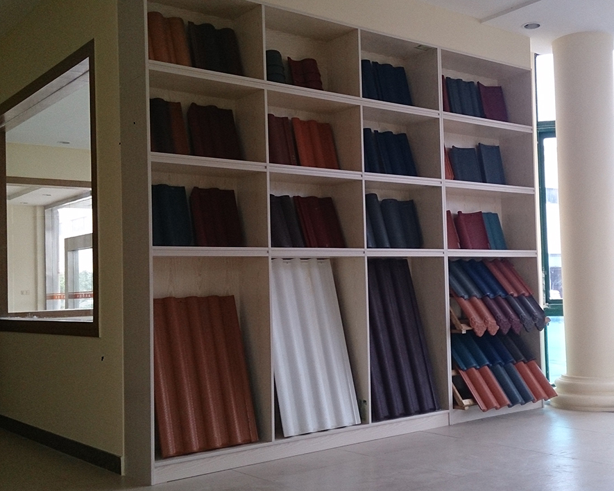 1、平板瓦--独特的防水结构 只有模压成型才能作到瓦谷底部结构镂空,使雨水的